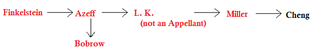 Mitchell Finkelstein, a former corporate lawyer, set off the chain of events when he tipped off Paul Azeff by giving him material non-public information regarding three separate acquisitions. Azeff, a longtime friend of Finkelstein’s, tipped off Korin Bobrow. Azeff also tipped off L.K ., who did not appeal the Commission’s decision. L.K. passed the information to Howard Miller, who, in turn, passed it to Man Kin (Francis) Cheng. Apart from Finkelstein, the appellants were all investment advisors.